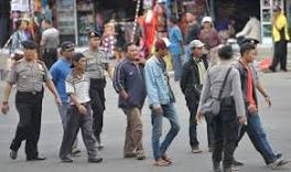 Geledah Penadah Motor, Polisi Ditusuk Anak Panah Polisi menggiring sejumlah orang untuk diperiksa lebih lanjut saat razia ketertiban terminal menjelang Lebaran di Terminal Ubung, Denpasar, Rabu ...