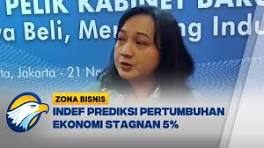 INDEF Prediksi Pertumbuhan Ekonomi Stagnan 5% [Zona Bisnis] - YouTube MetroTV, INDEF memprediksi pertumbuhan ekonomi Indonesia pada 2024 bakal stagnan di 5%. Terpilihnya Donald Trump menjadi salah satu penyebab ...