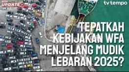 Tempo Eksplainer: Tepatkah Kebijakan WFA Menjelang Mudik Lebaran 2025 - YouTube Untuk mengurai kepadatan arus mudik, pemerintah sedang mempertimbangkan penerapan sistem kerja dari mana saja atau work from anywhere (WFA) bagi ...