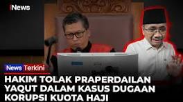 Hakim Tolak Permohonan Praperadilan Yaqut - YouTube Hari ini digelar sidang putusan praperadilan mantan Menteri Agama Yaqut Qolil Qoumas, yang menjadi tersangka korupsi kuota haji. Hakim tunggal ...